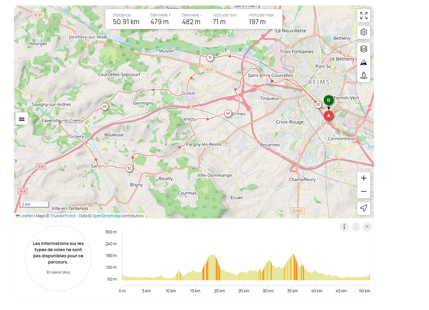 Reims – Saint Brice Courcelles – Champigny – Muizon Gare – Gueux – Rosnay – Treslon – Faverolles Et Coemy – Tramery – Poilly – Sarcy – Aubilly – Saint Euphraise – Coulommes – Vrigny – Ormes – Thillois – Champigny – Saint Brice Courcelles – Reims