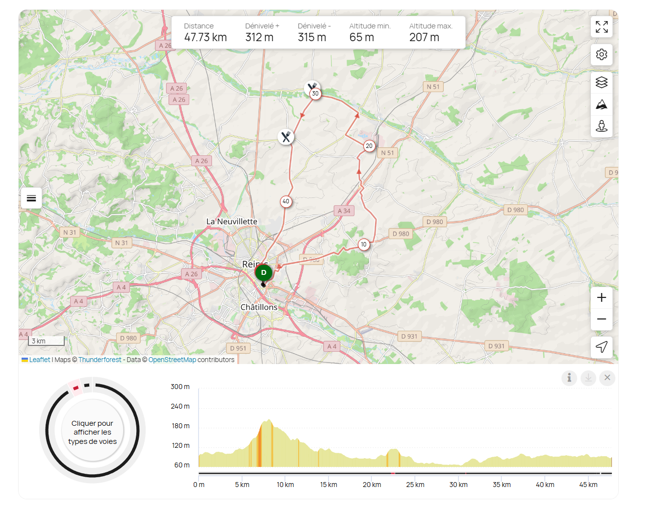 Reims – Cernay Les Reims – Nogent L’abbesse – Beine Nauroy – Epoye – Selles – Saint-Masmes – Epoye -Lavannes – Pomacle – Boult Sur Suippe – St Etienne Sur Suippe – Bourgogne – Bétheny – Reims